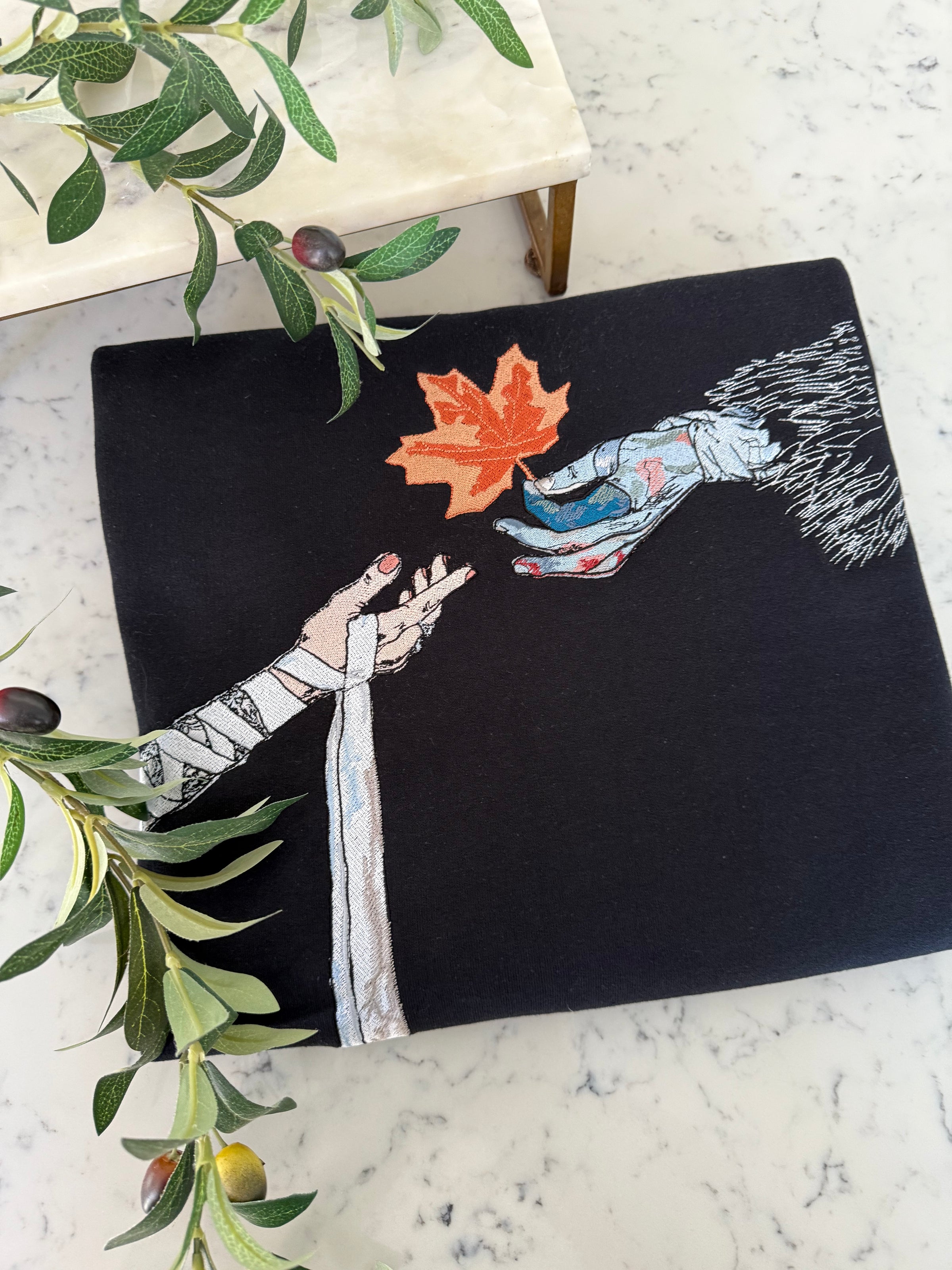 - Sweatshirt graphic may appear larger or slightly smaller depending on the size of the shirt. I Embroidered image on shirt measures approximately 11” tall. Mockups are made using mockup files and product style may vary slightly.