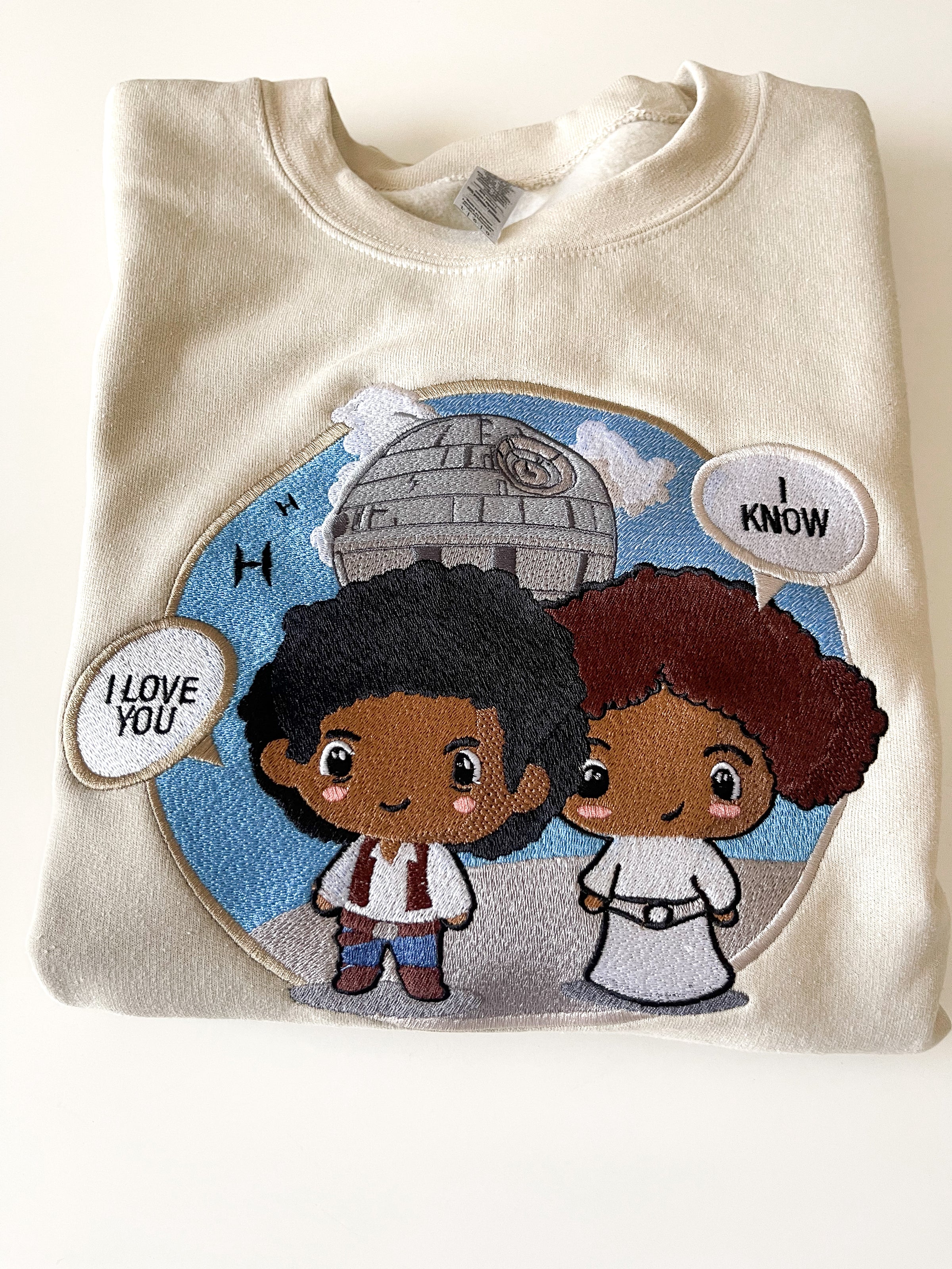 Calling all Star Wars fans. Han Solo professes his love to Princess Leah, but as all true divas…she already knew.This would make the perfect couples set for your next Disney trip.